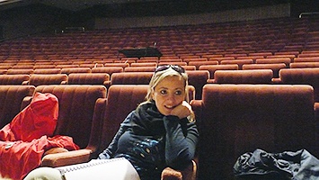 že zkoušíme psychologické drama. Jana Pin v pozadí píše